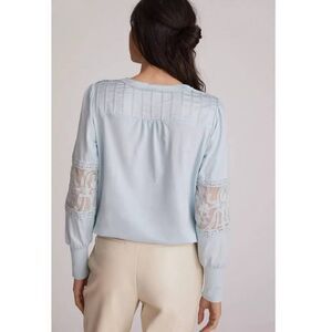 Anthropologie Tiny Blue Lace Top with Button Shoulder Detail
