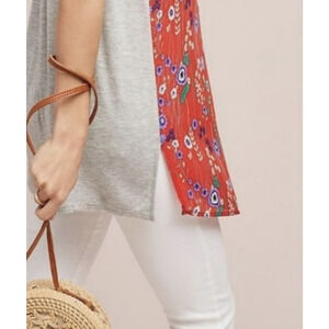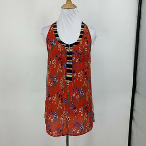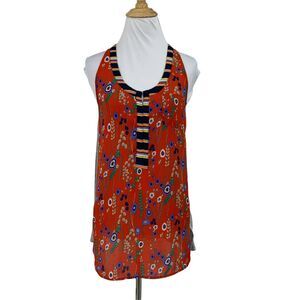 Anthropologie Tiny Floral Tank Women's Size XS Side Slits Sheer Front Rayon Back
