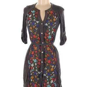 Anthropologie Tiny Gathered Vines Tunic Dress XS NWT Grey Floral Embroidery