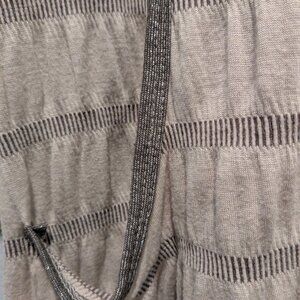 Vintage metallic weave hooded snap up light jacket by Anthropologie "Tiny". It is a wonderful piece of clothing with its unique tiered style and drop shoulders. Two usable pockets are in the front. It is super comfortable and soft. Looks good dressed up or down! Light brown and white.