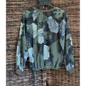 Anthropologie Tiny Ivy Floral Drawstring Waist Blouse Women's XS Green Bohemian