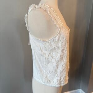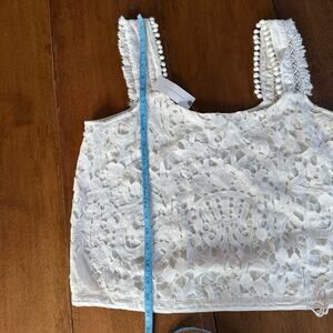 Anthropologie Tiny Macie Crochet Lace PomPom Tank Top Ivory SzMed Boho Feminine