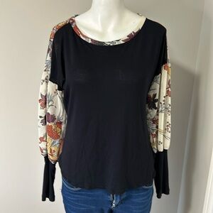 Anthropologie Tiny Raye Balloon Sleeve Mixed Media Blouse Black Size Small
