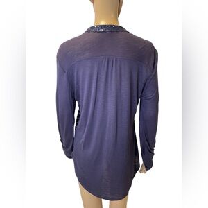Anthropologie Tiny Vaha Blue Burnout Velvet Leopard Top Sequin size S