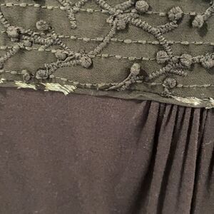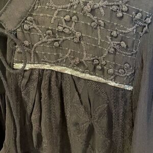 Anthropologie Tiny black long sleeve top with black overlay. The sleeves are sheer. On the back of the top the gold is missing and coming off in some parts. This top is in great condition.