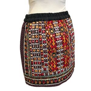 Anthropologie Tolani Michelle Black Mirrored Skirt. Like new! See photos for details and measurements. Elastic waistband. Gorgeous embroidery with mirrors.