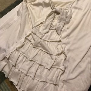 Cream colored lined tank top by LEIFSDOTTIR, it has a plain pleated front with a super cute ruffle tie back! In perfect condition and runs true to size. Trade value is $30.