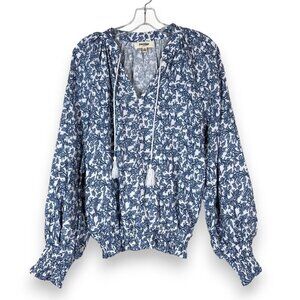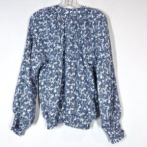Anthropologie Top Blouse Peasant Boho Floral Elisabeth Gauze Smocked Blue Small