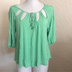 Anthropologie Top Bundle 2 Green Bells Cutout Red White Stripe Eyelet T-Shirt