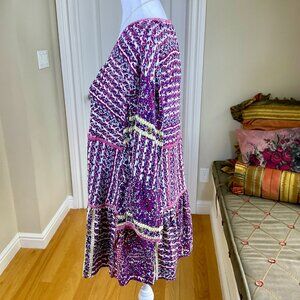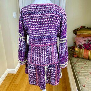 Really beautiful boho patchwork floral tiered tunic top with flare sleeves and V-neck, button front, Lilyana