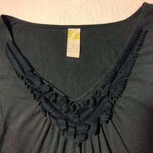 Anthropologie Top Ruffle V-Neck Charcoal L