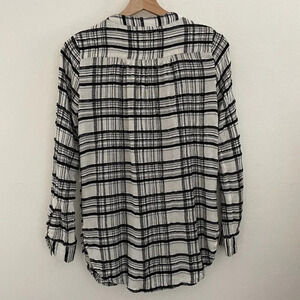 Anthropologie Top Women 4 Black White Plaid Tunic Shirt Button Up Wool Blend