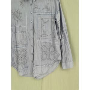 Anthropologie Top Women XS Blue Patchwork Eyelet Button Boho Cottage Embroidered