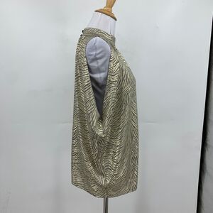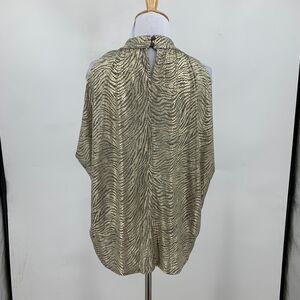 Anthropologie Top Womens M Medium Gold Metallic Mock Neck Halter Zebra Blouse
