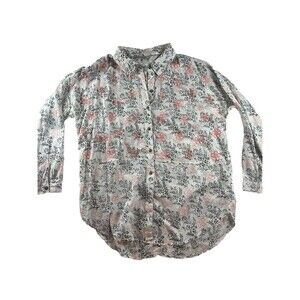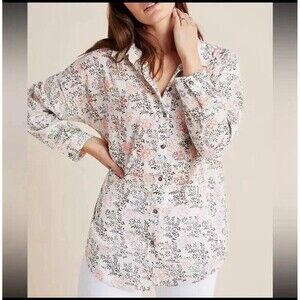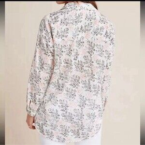 Anthropologie Top Womens M/L Enchanted Floral Button Down Printed Embroidered