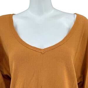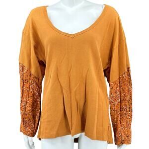 Anthropologie Top Womens Medium Cumin Gold Waffle Knit Thermal Oversized 100% Cotton V-Neck Long Sleeves Boho Style OB1224287 Fall Autumn Cool Weather Casual Cozy Cabin