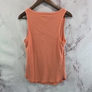 Anthropologie Top Womens Medium Tank Orange Ribbed Henley Scoop Peach Tla
