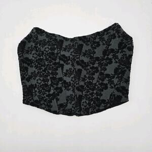 Anthropologie Top Womens Small Gray Black Strapless Crop Brocade Velvet Floral