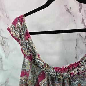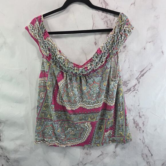Anthropologie Top Womens Small Pink Blue Tank Off Shoulder Paisley Meadow Rue