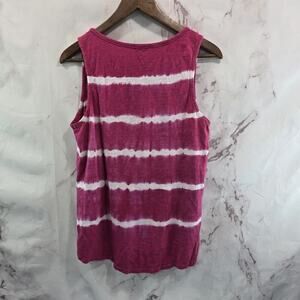 Anthropologie Top Womens Small Pink White Tank Tie Dye Stripe V Cotton Eri Ali