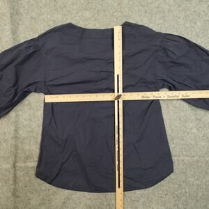 Anthropologie Top Womens Small Tie Neck Navy Blue HD in Paris 3/4 Balloon Sleeve