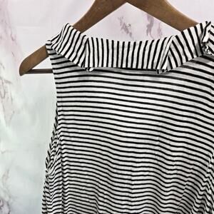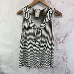 Anthropologie Top Womens XS Black White Striped Tank Ruffle Tie Dolan Knit