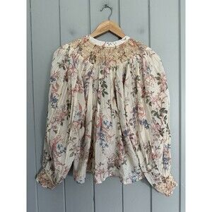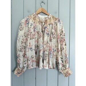 Anthropologie Top XXS Long Sleeve Smocked Lurex Bohemian Cream Pink Boho