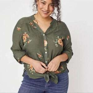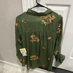 Anthropologie fig and flower Boho Western Floral Tunic Blouse button up embroidered , Beautiful BoHo blouse in a Johnny Was vibe, in olive green ...