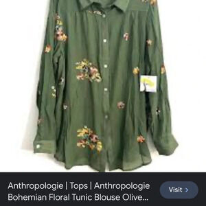 Anthropologie | Tops | Anthropologie Bohemian Floral Tunic Blouse Olive...