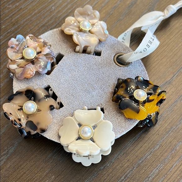 Anthropologie Tortoise Shell Flower Hair Clips Set