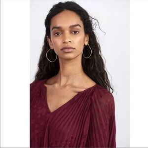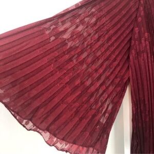 Excellent preowned condition! This dress is stunning with a textured maroon fabric with a bit of shine. Wide bell sleeves.