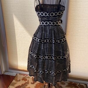 Anthropologie Tracy Reese Black and Cream Lattice Ring dress.