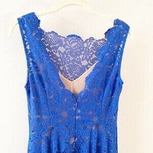 Anthropologie Tracy Reese Cerulean Sky Cobalt Blue Lace Asymmetrical Fit & Flare Midi Dress