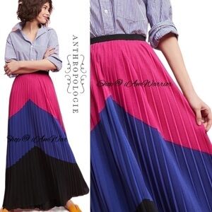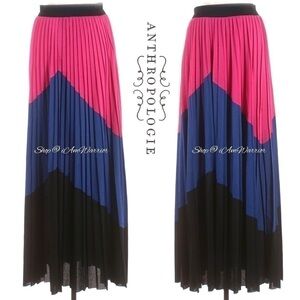 Stunning Anthropologie Tracy Reese pleated maxi skirt in vibrant color block. Pair with a basic, graphic tee or crisp button down. Size medium, waist band is stretchy for comfortable & flattering fit! Fully lined. See photos for unstretched measurements. Even more beautiful in person. EUC. (Tags removed). Very rare, no one else is selling this!