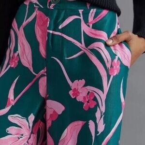 Anthropologie Tropical Floral Breezy Printed Straight Wide Leg Pants