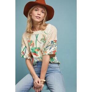 Anthropologie Tropical Floral Short Sleeve Sweater Size Small