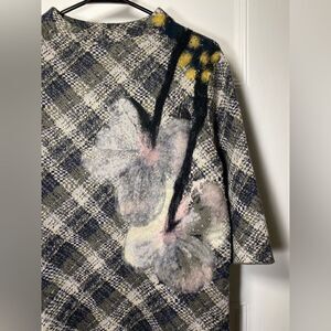 Anthropologie Troubadour Plaid Floral Petal Detail Mock Neck Sweater Small
