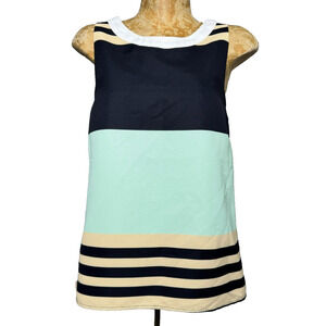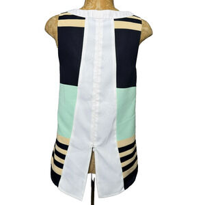 Anthropologie Troubadour Top Womens 4 Black Green Colorblock Sleeveless Crew Zip