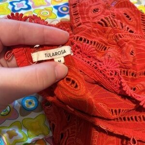 Anthropologie Tularosa Chetna Lace Tunic Dress Red Embroidered Mini Size Medium