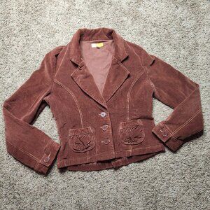 Anthropologie Tulle Burgundy Red Brown Fitted Corduroy Jacket. Size XL