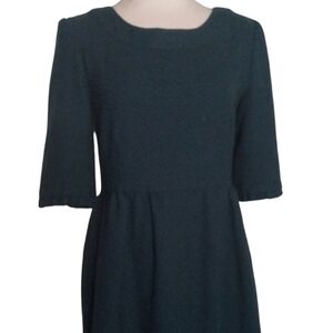 Anthropologie Tulle Chevron Texture Wool Blend Teal Green Midi Dress Size Small