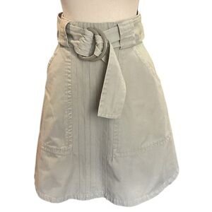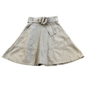 Anthropologie Tulle Clothing Cotton A-Line Belted Skirt, Light Khaki Color Small