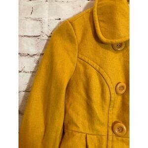 Anthropologie Tulle Coat Womens Small Pea Coat Mustard Yellow Wool Button Front