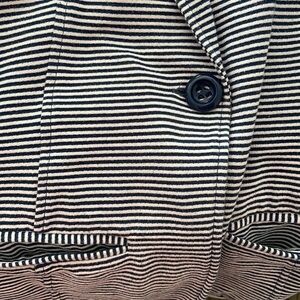 Anthropologie Tulle Striped blue and white 3/4 length blazer with button front and pockets