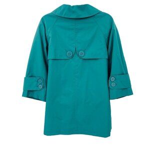 Anthropologie Tulle Teal Rain Coat Jacket Big Buttons Peter Pan Collar Small