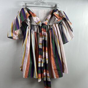 Anthropologie Tunic Top Womens Babydoll Striped Smocked Ruffled Sleeve size M