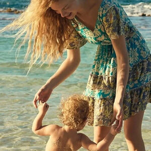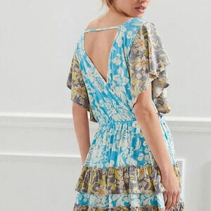 ANTHROPOLOGIE Turquoise Floral Daily Practice Tiered Ruffle Mini Dress Floral size small.