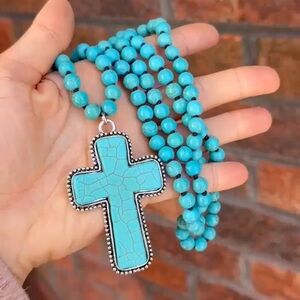 Anthropologie Turquoise Natural Stone Beads Bohemian Western Cross Necklace