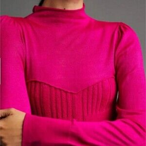 Anthropologie Turtleneck Knitted Ribbed Long Sleeve Stretch Sweater Mini Dress