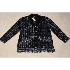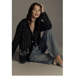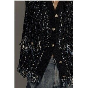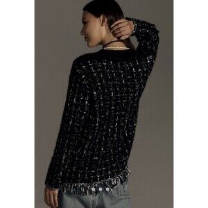 Anthropologie Tweed Fringe Cardigan Sweater Sz Sm Black NWT
